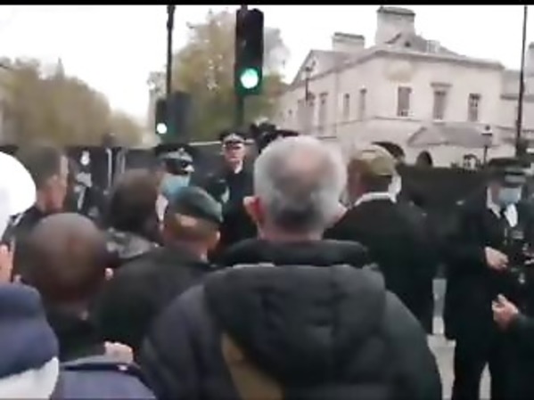 UN JOUEUR DE CORNEMUSE SE FAIT BRUTALEMENT BOUSCULER PAR UN POLICIER