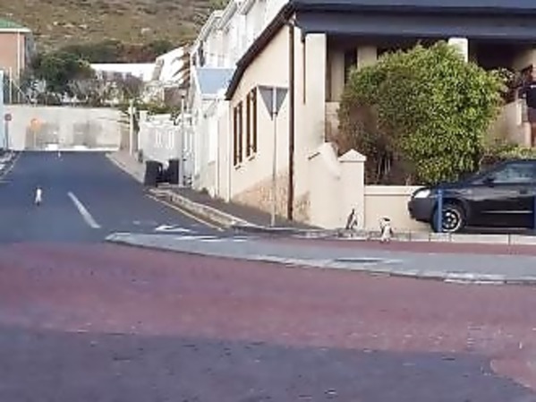 DES MANCHOTS PROFITENT DE CONFINEMENT POUR SE PROMENER EN VILLE (AFRIQUE DU SUD)