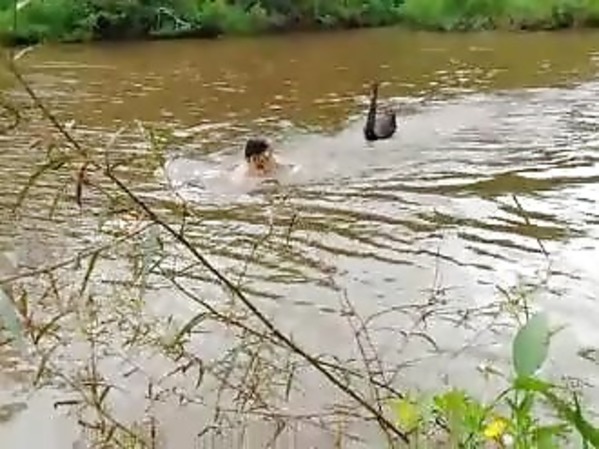 UN HOMME PLONGE DANS LA MAUVAISE RIVIÈRE ET SE FAIT ATTAQUER PAR UN CYGNE