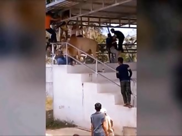 UN ZÉBU S’EN VA DANS LES GRADINS POUR ATTAQUER UNE FEMME