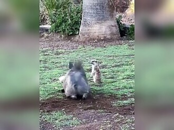 UN JEUNE GORILLE JOUE AVEC DES SURICATES AU ZOO ARTIS (AMSTERDAM)