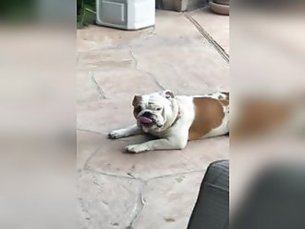 UN BULLDOG FAIT DU BIEN À SA COMPAGNE