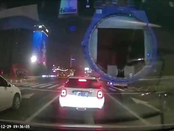 UNE VOITURE SE FAIT ÉCRASER PAR UN CAMION TRANSPORTANT UNE ÉNORME PIÈCE MÉTALLIQUE