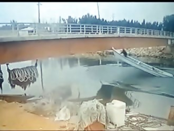 CHINE : UN OPÉRATEUR N’A QUELQUES SECONDES POUR QUITTER SA GRUE QUI BASCULE DANS L’EAU