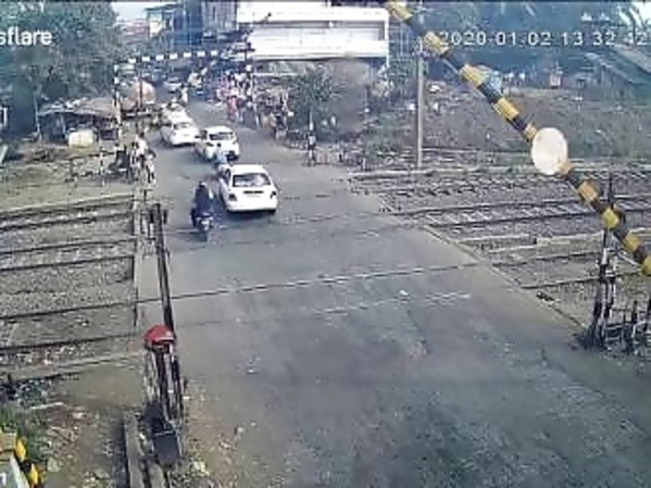 INDE : UN SCOOTÉRISTE TOTALEMENT IMPRUDENT S’ÉCRASE SUR LA BARRIÈRE D’UN PASSAGE À NIVEAU