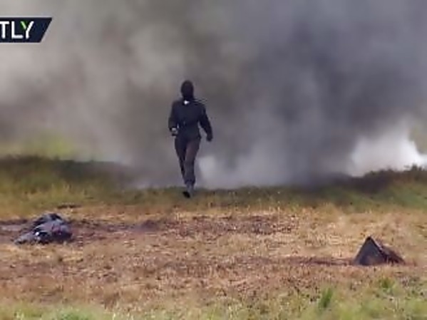 UNE FEMME TRAVERSE UN CHAMP D’EXPLOSIONS POUR TESTER SA COMBINAISON
