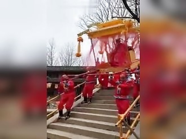 UN CYCLISTE SE PREND UN CONTENEUR SUR LA TÊTE ET SURVIT (CHINE)