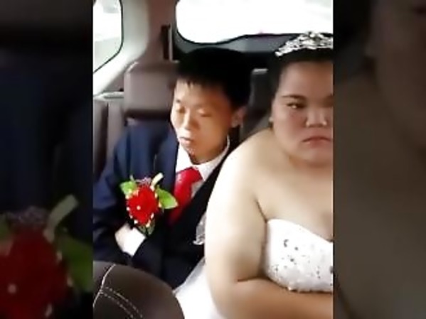 PROFONDÉMENT CONTRARIÉE PAR SON ÉPOUX IVRE, UNE JEUNE MARIÉE TIRE LA GUEULE (CHINE)
