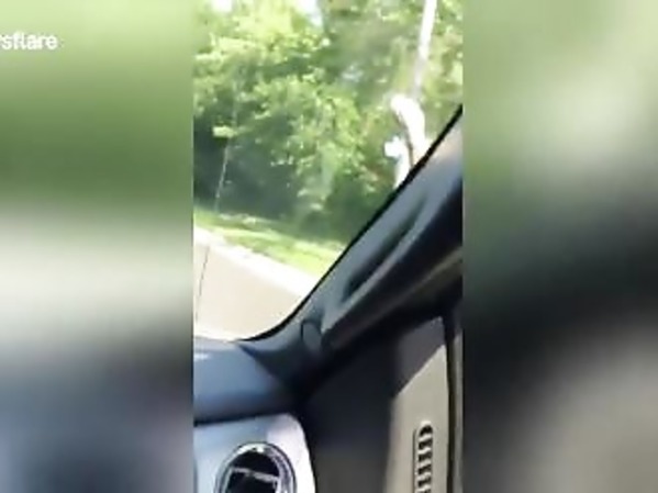UNE BICHE SAUTE SUR UN MOTARD ET LE FAIT TOMBER BRUTALEMENT (TEXAS)