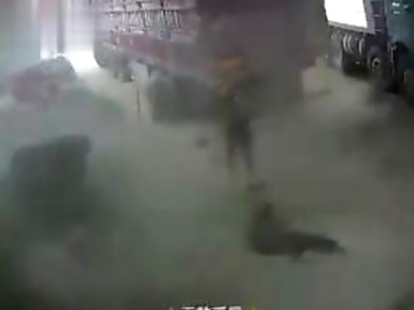 UN CHEVAL EFFRAYÉ TOMBE D’UNE REMORQUE