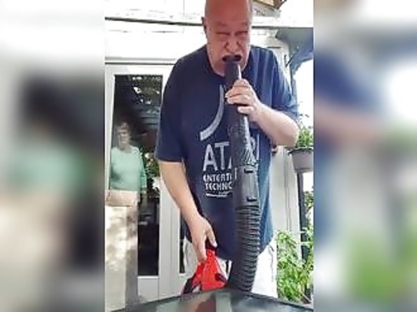 SURPRIS PAR SA FEMME AVEC UN SOUFFLEUR DE FEUILLES DANS LA BOUCHE