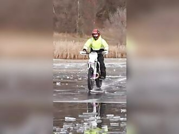 S'AMUSER À MOTO SUR UN LAC À MOITIÉ DÉGELÉ EST UNE MAUVAISE IDÉE