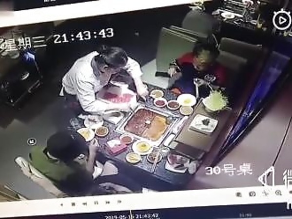 UN CHAUFFE-PLAT EXPLOSE AU BEAU MILIEU DE LA TABLE D’UN RESTAURANT (CHINE)