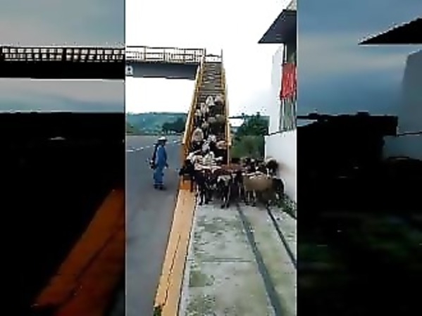 POUR TRAVERSER L’AUTOROUTE, DES MOUTONS EMPRUNTENT UNE PASSERELLE PIÉTONNE