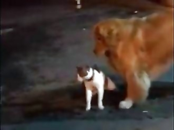 UN CORBEAU TENTE DE METTRE UN TERME À UNE BAGARRE ENTRE DEUX CHATS