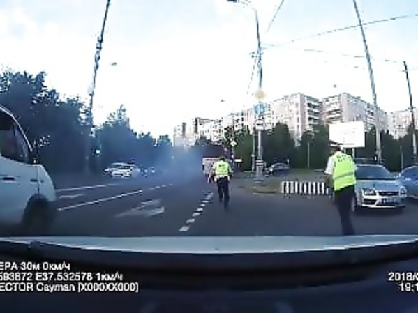 RUSSIE : DES POLICIERS PRENNENT EN CHASSE UNE VOITURE EN FEU !