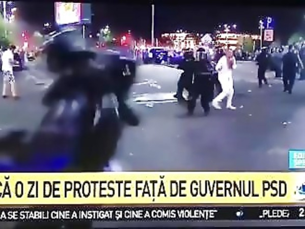 BUCAREST : UN POLICIER SE FAIT FRAPPER PAR UN MANIFESTANT