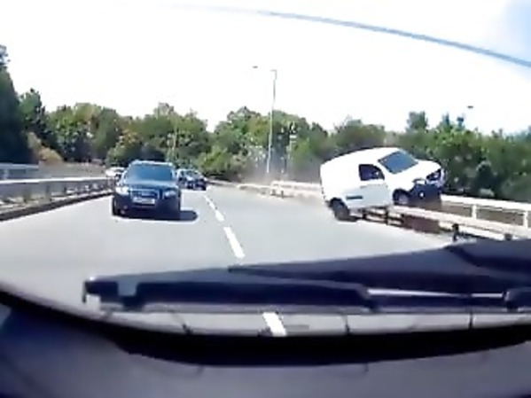 ANGLETERRE : QUAND UN UTILITAIRE MANQUE DE TOMBER DU HAUT D’UN PONT