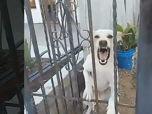 HEUREUSEMENT QUE CE CHIEN SE TROUVE DERRIÈRE UNE BARRIÈRE !