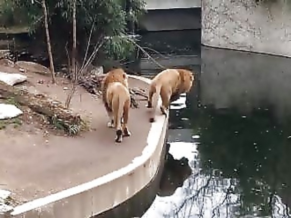 DOUCHE FROIDE INVOLONTAIRE POUR CE LION MALADROIT