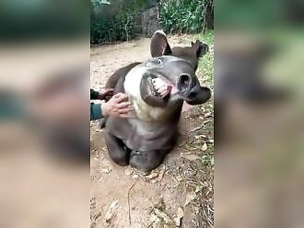 CE TAPIR ADORE LES CARESSES !