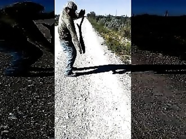 UN HOMME S’AMUSE AVEC UN SERPENT INDIGO