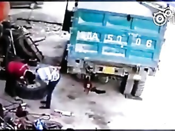 UN HOMME SE FAIT SOUFFLER PAR L’EXPLOSION D'UN PNEU DE CAMION