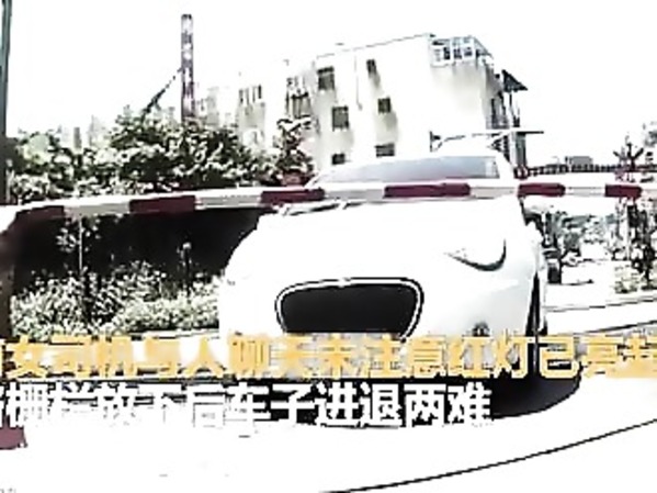 COINCÉE À UN PASSAGE À NIVEAU, UNE VOITURE ÉCHAPPE DE PEU À UNE COLLISION FATALE (CHINE)