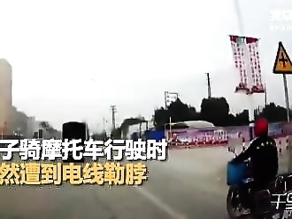 CHINE : MOTOCYCLISTE VS CÂBLE ÉLECTRIQUE