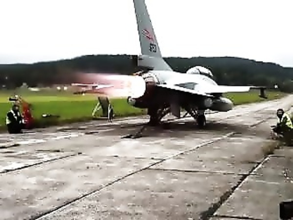 TEST AU SOL DU RÉACTEUR D’UN F-16 FIGHTING FALCON