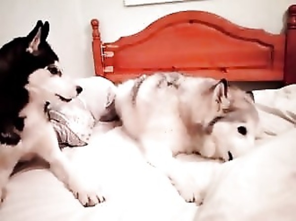 DEUX CHIENS SE DISPUTENT FÉROCEMENT LE PARTAGE DU LIT