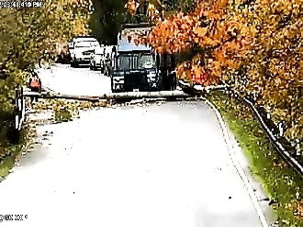 WASHINGTON : UN CAMION À ORDURES AIDE À DÉBLAYER UN ARBRE TOMBÉ EN TRAVERS D’UNE ROUTE