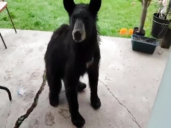 UN JEUNE OURS TENTE DE PÉNÉTRER DANS UNE MAISON ET SE FAIT SURPRENDRE PAR LA PROPRIÉTAIRE DES LIEUX