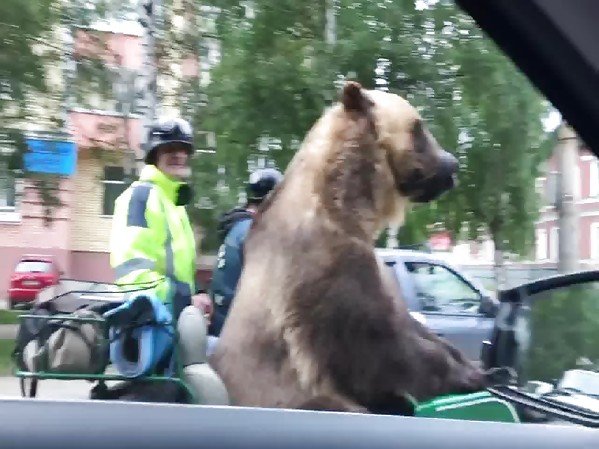 RUSSIE : ILS FONT UNE PETITE BALADE AVEC LEUR OURS…