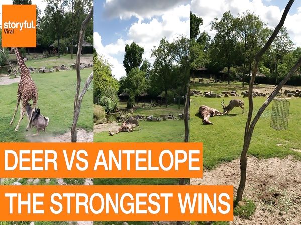 DANS LE ZOO DE ROTTERDAMNE, UNE ANTILOPE ATTAQUE UNE GIRAFE