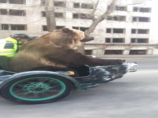 EN RUSSIE, UN OURS FAIT UNE PETITE BALADE EN MOTO