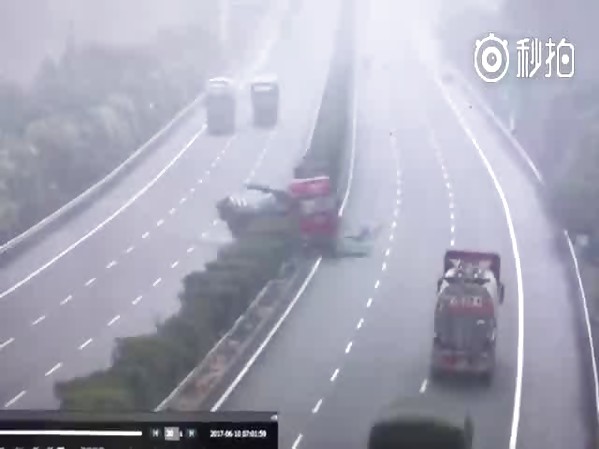 UN CAMION PROVOQUE UN ÉNORME ACCIDENT SUR UNE AUTOROUTE EN CHINE