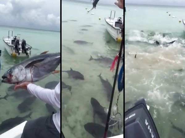 DES CARANGUES À GROSSE TÊTE DÉVORENT UN THON EN QUELQUES SECONDES SEULEMENT
