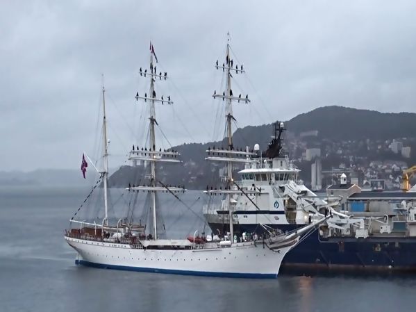 LES MARINS DU VOILIER STATSRAAD LEHMKUHL CHANTENT EN RENTRANT AU PORT