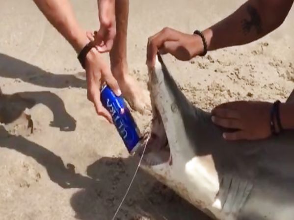 PERCER SA CANETTE DE BIÈRE AVEC LA MÂCHOIRE D'UN REQUIN