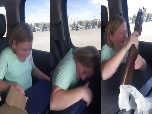UNE ENFANT REÇOIT UNE ARME À FEU ET PLEURE DE JOIE