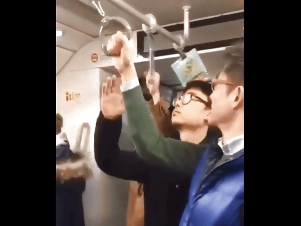 CE PASSAGER D’UN MÉTRO BONDÉ N’AVAIT PAS ASSEZ DE PLACE POUR SE TENIR ET IL A DONC IMAGINÉ UNE AUTRE TECHNIQUE