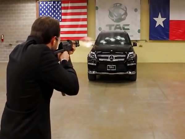 CETTE ENTREPRISE A TESTÉ LE BLINDAGE DU PARE-BRISE D’UNE MERCEDES EN TIRANT DESSUS AVEC UNE KALASHNIKOV