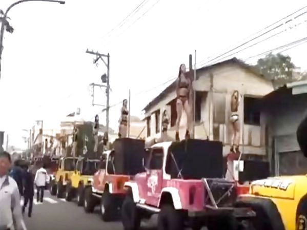 UNE CINQUANTAINE DE DANSEUSES DE POLE DANCE EN TENUE LÉGÈRE ONT DANSÉ SUR DES PICK-UPS COLORÉS