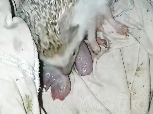 UNE FEMELLE HÉRISSON EN TRAIN DE METTRE BAS EN THAÏLANDE