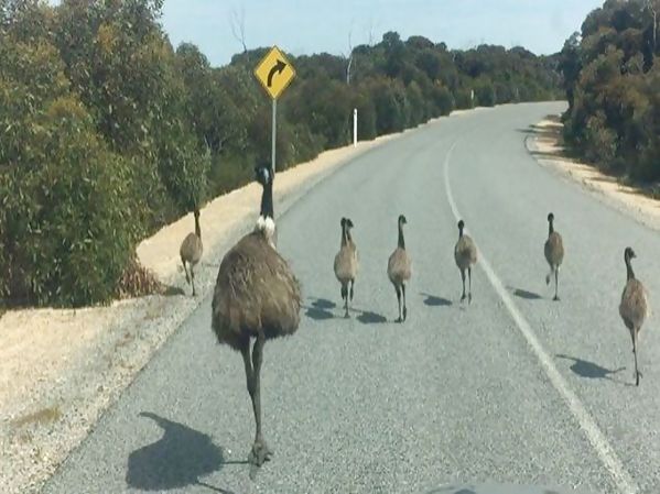 UN AUTOMOBILISTE A SUIVI UNE MAMAN ÉMEU ET SES SEPT PETITS QUI COURAIENT SUR UNE ROUTE