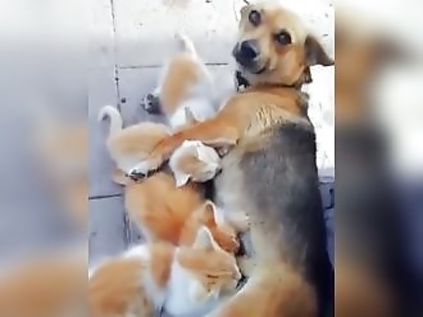 UN CHIENNE ET SES PETITS .. ENFIN PRESQUE