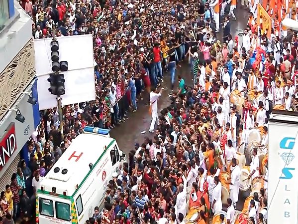 UNE FOULE DISCIPLINÉE S'EST ÉCARTÉE POUR LAISSER PASSER UNE AMBULANCE (INDE)