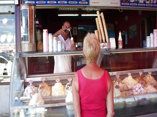 UN MARCHAND RÉALISE UNE GLACE À LA FORME UN PEU PARTICULIÈRE POUR UNE CLIENTE