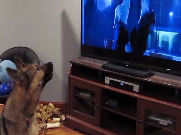 UN BERGER ALLEMAND HURLE DEVANT UNE SCÈNE DU FILM D'ANIMATION « ZOOTOPIE »